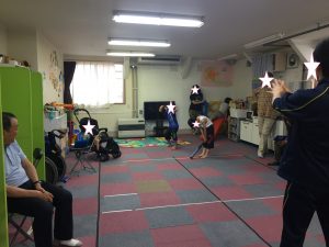 むぎの子で 臨床心理士をされている金澤先生に来て 頂き、療育のアドバイスをして頂きました。 日々のトレーニングとは別で、月に1度の井川先生による 直接指導、ビジョントレーニングの日でもありました。 ☆ 野球を楽しんでいる